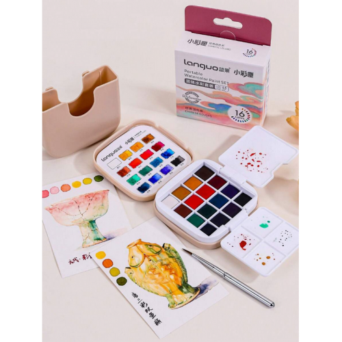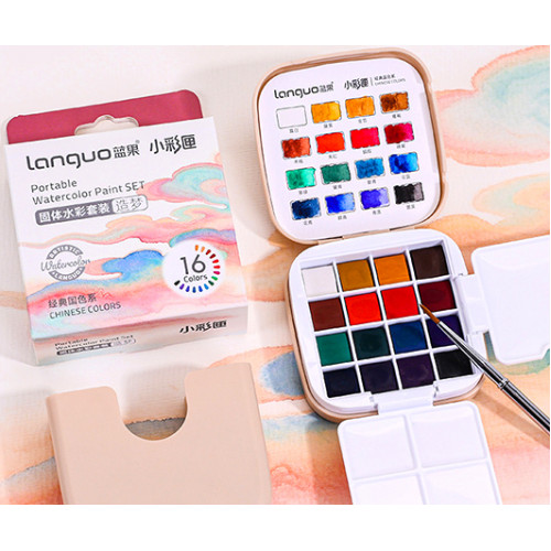 Карманный набор акварели Languo в пластиковом пенале, с кистью и палитрой, "Chinese"