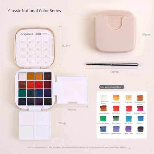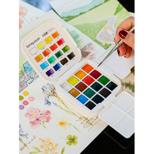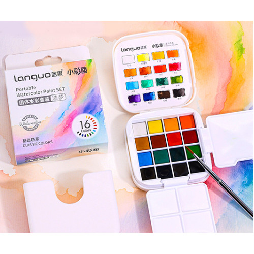 Карманный набор акварели Languo в пластиковом пенале, с кистью и палитрой, "Classic"