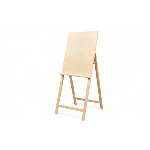 Данная хлопушка предназначена для взрослых художников. В модели предусмотрен встроенный планшет, размером 60*60 см, на который крепится бумага с помощью канцелярских кнопок или скотча. Угол наклона мольберта меняется при перемещении задних ног. Мольберт хлопушка оснащен полочкой для инструментов, на которой можно разместить карандаши, кисти и ластики, а также можно поставить грунтованный картон, холст на картоне или на подрамнике.